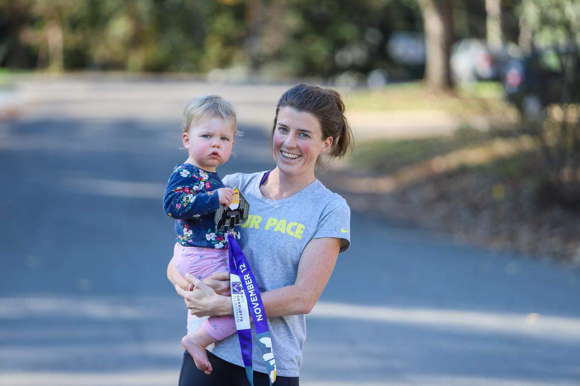 “The gift is not that I’m fast again,” Erin said last week, while sitting at the kitchen table of her Charlotte home with her daughter Emma, who popped Cheerios into her mouth as her mom talked. “The gift is that I have been able to train this much, and to enjoy it. It’s just a gift to be able to run at all.