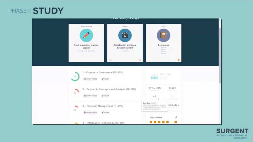 I feel Becker is great thanks to their live online classes, personalized support, and essay question walkthrough videos. However, if practice is more your thing, Gleim’s tough questions are perfect for overpreparing yourself for success. Finally, if you’re on a budget, Surgent offers many valuable resources comparable to their competitors for a significantly lower price.