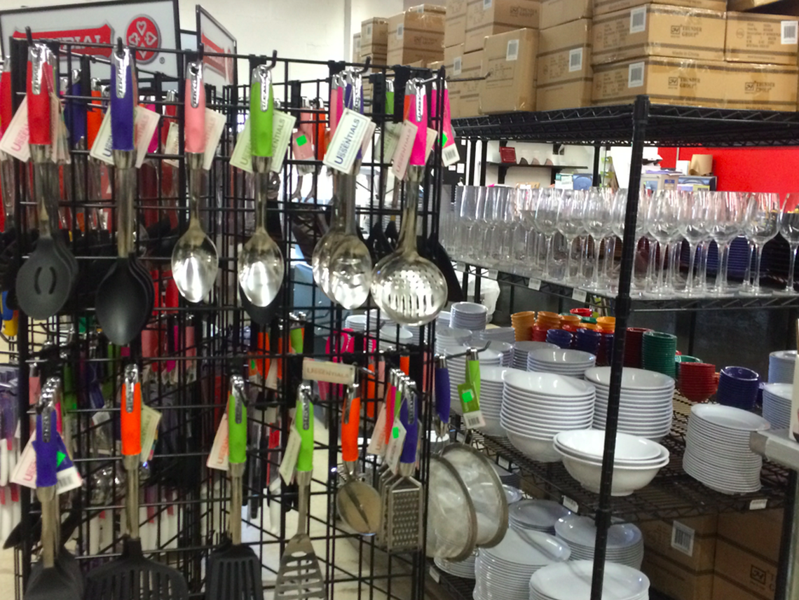 I’m coming back here ASAP, since my roommate moved out and I’m missing odds and ends in my kitchen. Yes, this family-owned-and-operated store provides cooking equipment and supplies to places like churches, restaurants and medical facilities, but it’s also open to the public. The warehouse is enormous and runneth over with new and used supplies, from barstools to spatulas (cute colors, too) to plastic stemware.