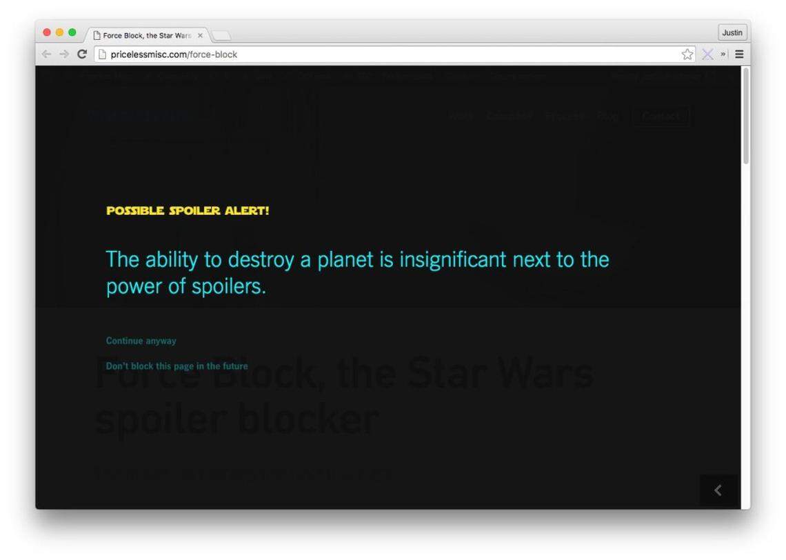 Keep the spoilers out of your browser. Force Block stops any mention of Star Wars: https://t.co/y8e4jRY1Gy pic.twitter.com/a5LojjUTIE
