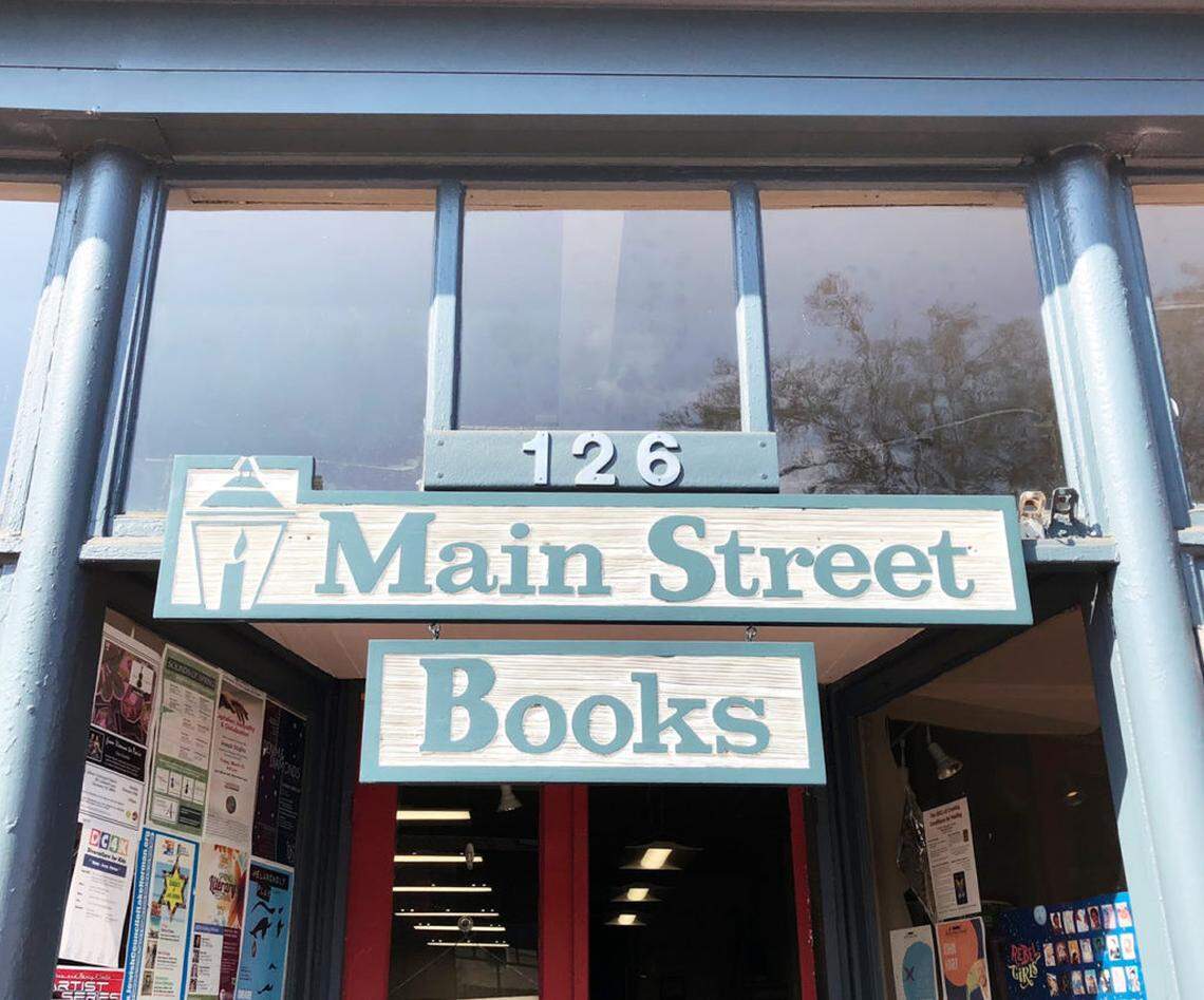 Nestled on Main Street with a cheery blue exterior, Main Street Books at