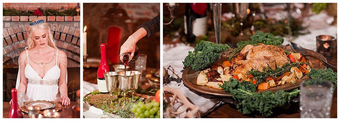 For the dining room, we knew we wanted something grand and elaborate. In my mind, I was picturing an upscale version of Medieval Times. Elizabeth from Events by Elizabeth Ashley coordinated the food and placed it on the platters that she brought from Miss Match Rentals.