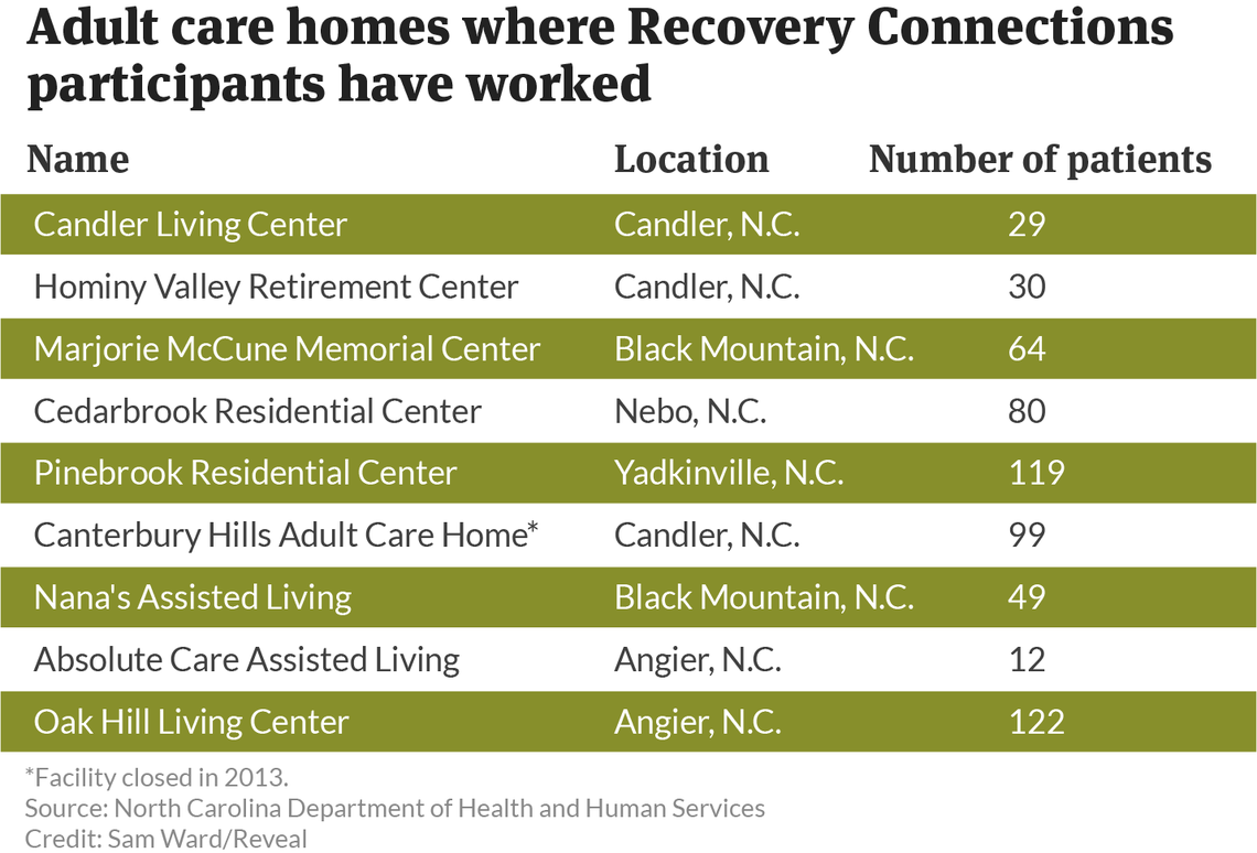 After questions from Reveal, the state health department finally began to crack down. On Wednesday, it banned Recovery Connections from sending participants to work as caregivers at adult care homes, potentially cutting off the program’s main source of funding.