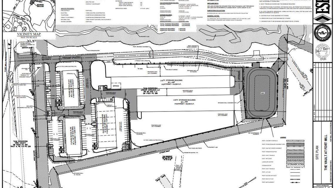 On Tuesday night, the Fort Mill planning commission will hear plans from Vulcan Property Group for 12 acres of Lennar Carolinas-owned property at Fort Mill Parkway and Spratt. A commercial development there called The Vault includes two mini-warehouses, two retail or flex buildings and one office or storage building. The property will use the new intersection alignment under construction near the town wastewater plant.