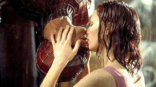 Superheroes just can't do things the easy way, can they? An upside down Spidey (Tobey Maguire) and a little water from the sky won't deter a grateful Mary Jane (Kristen Dunst) who accomplishes the deed without revealing her hero's identity. The kiss has become so iconic, even "The O.C." paid homage.