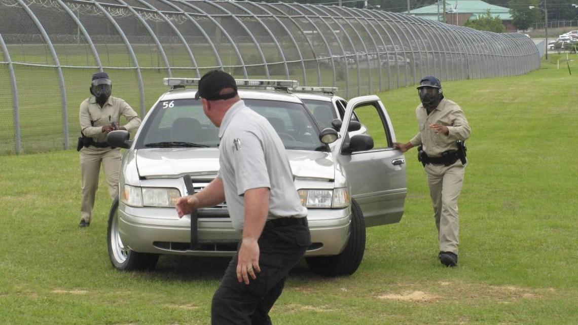 Officers are told to position themselves so they can’t be hit by cars they approach. Instructors also emphasize that almost all drivers don’t want to harm officers, even if they don’t want to be arrested. They’re reminded that if they’ve got the license plate number, a suspect will likely be more safely arrested soon.
