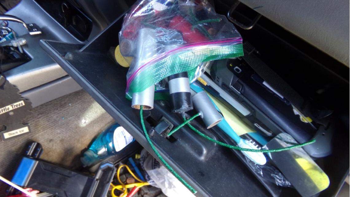Upon further search of the vehicle, other deputies, who had arrived on the scene, discovered what appeared to be pipe bombs inside the glove box.
