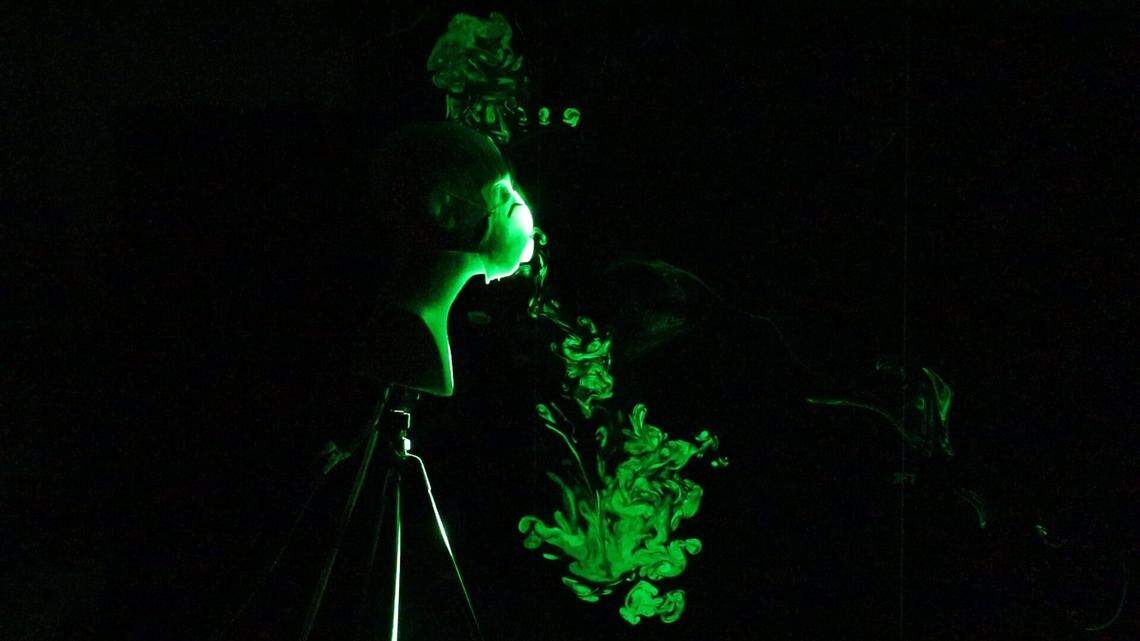 In the FAU study, researchers used a manual pump to simulate coughs and sneezes from a mannequin’s mouth with synthetic fog made of distilled water and glycerin. They beamed a horizontal and vertical laser light to capture how respiratory droplets move with a face shield and a valved mask.