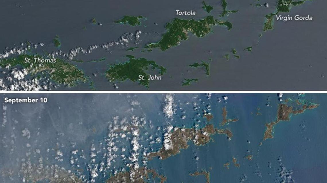 The NASA Earth Observatory released the images, taken by the Landsat 8 satellite, showing a side-by-side comparison of the Virgin Islands before and after Hurricane Irma struck, according to Business Insider.