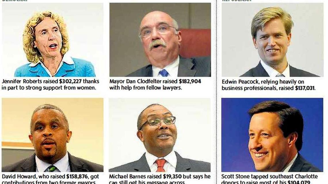 Charlotte’s six major candidates tapped a range of supporters as they pulled in more than $900,000, according to reports filed this month.