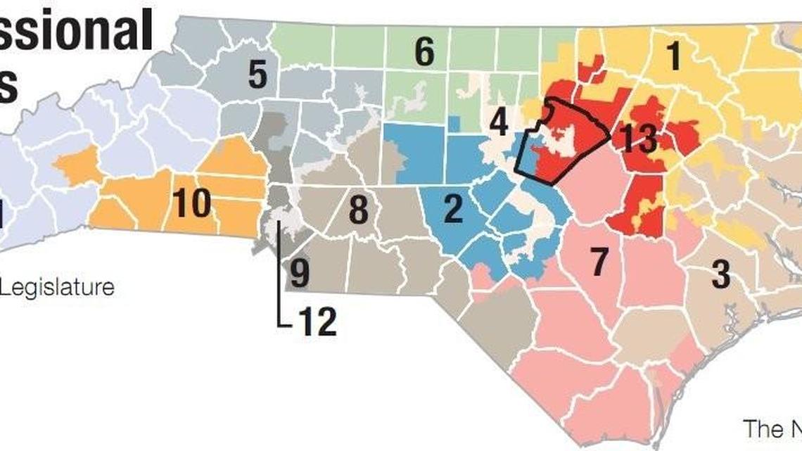 The 1st District, which is represented by Democrat G.K. Butterfield, weaves through 24 counties and contains only five whole ones as it collects voters in Durham, Elizabeth City, Roanoke Rapids, Rocky Mount, Goldsboro and New Bern.
