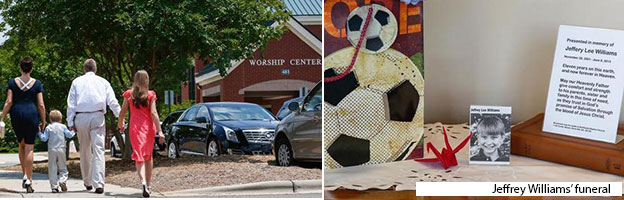 The night before they buried Jeffrey, Jeannie Williams was released from the hospital. She was brought to the church the next day in a wheelchair.