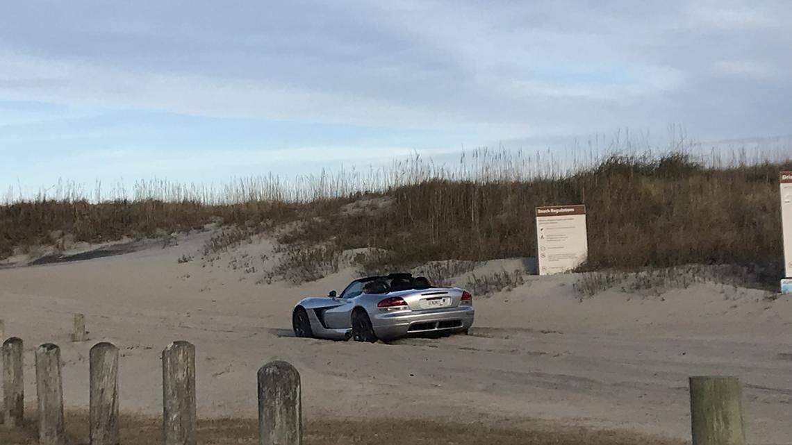 Jes Gray, owner of Sal’s NY Pizza in Kill Devil Hills, told McClatchy she was driving down the beach south of Nags Head when she saw what appeared to be a Dodge Viper stuck in the sand Wednesday. “We came around the corner and we thought, ‘Oh, that’s not a good idea.’ ”
