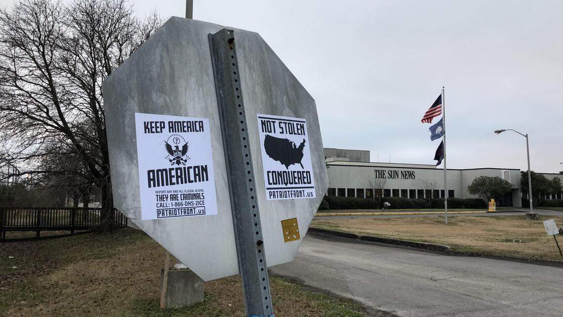 Flyers promoting the white supremacist Patriot Front group appeared on stop signs and light poles outside McClatchy Co.’s The Sun News newspaper in Myrtle Beach, South Carolina, over the weekend.
