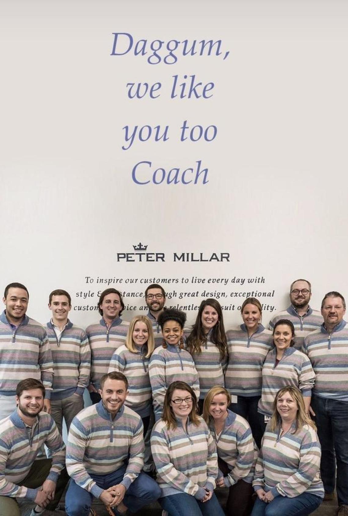 “He loved a similar sweater of ours, so our design team created this and called it ‘coach’ for him,” Mahoney said in an interview with The News & Observer on Thursday.