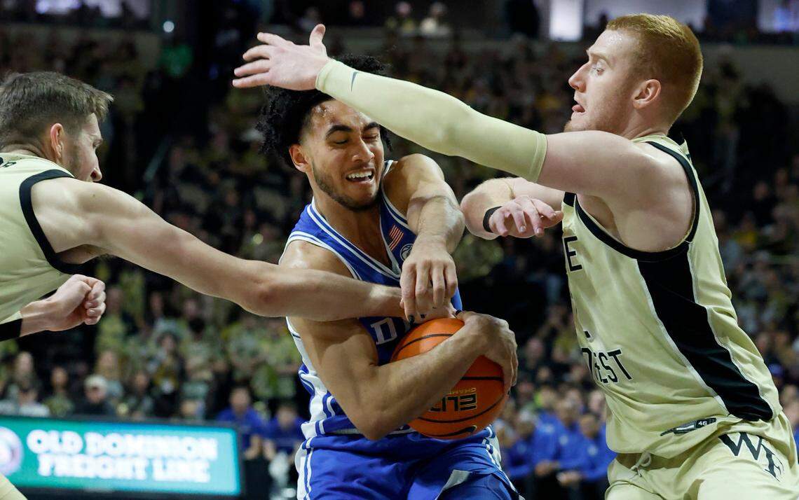 An aggressive court-storming episode following the game, however, left Duke with a troubling situation. Wake Forest fans collided with Duke star Kyle Filipowski as the preseason All-America selection was walking off the floor. Filipowski, who suffered a knee injury, grimaced and had to be helped off the floor by teammates and team personnel.