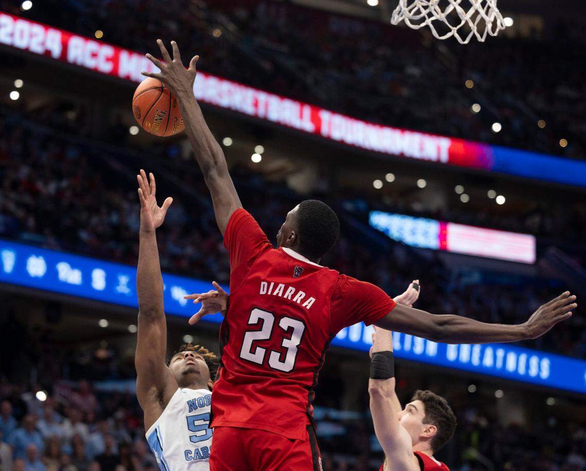 N.C. State’s Mohamed Diarra (23) shoots during N.C. State’s 84-76 victory over UNC in the championship game of the 2024 ACC Men’s Basketball Tournament at Capital One Arena in Washington, D.C., Saturday, March 16, 2024. Ethan Hyman ehyman@newsobserver.com