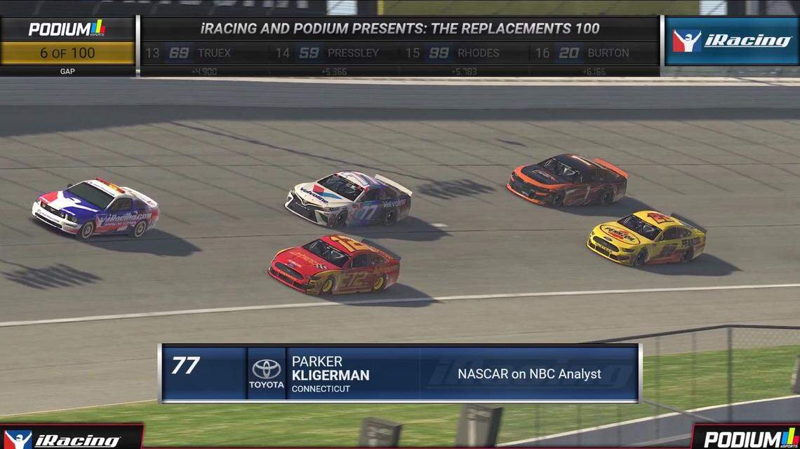 On-track experience doesn’t necessarily make you a better iRacer, but there is overlap. Full-time Xfinity driver Josh Williams won the Replacements 100, while full-time Cup Series driver William Byron finished in second place. Steven Steffen, T.J. Majors, Kligerman, Tyler Overstreet, Garrett Smithley, Earnhardt Jr., Wallace and Coleman Pressley rounded out the top 10.