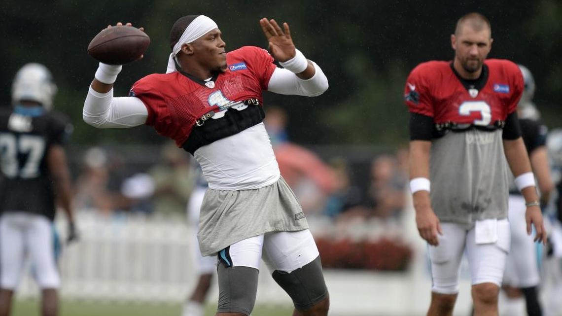 ▪ Cam Newton challenged himself not to throw any interceptions to LBs Luke Kuechly and Thomas Davis during camp. He made it more than two weeks before Kuechly picked him off on the first play of 7-on-7s Sunday. As Kuechly ran toward the end zone, he yelled: “Got him!”