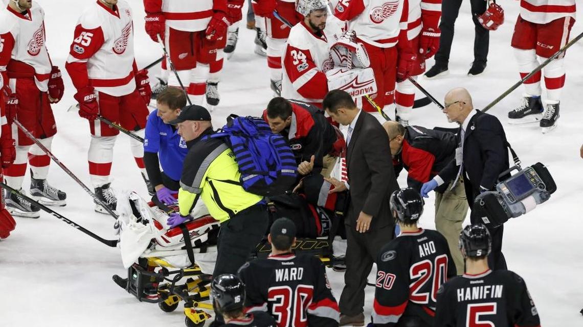 Fans and players from both teams had watched silently for several minutes at PNC Arena after Lack, nearly motionless after being hit by the Red Wings’ Andreas Athanasiou as Athanasiou scored the winning goal, was treated on the ice at the goalie crease.